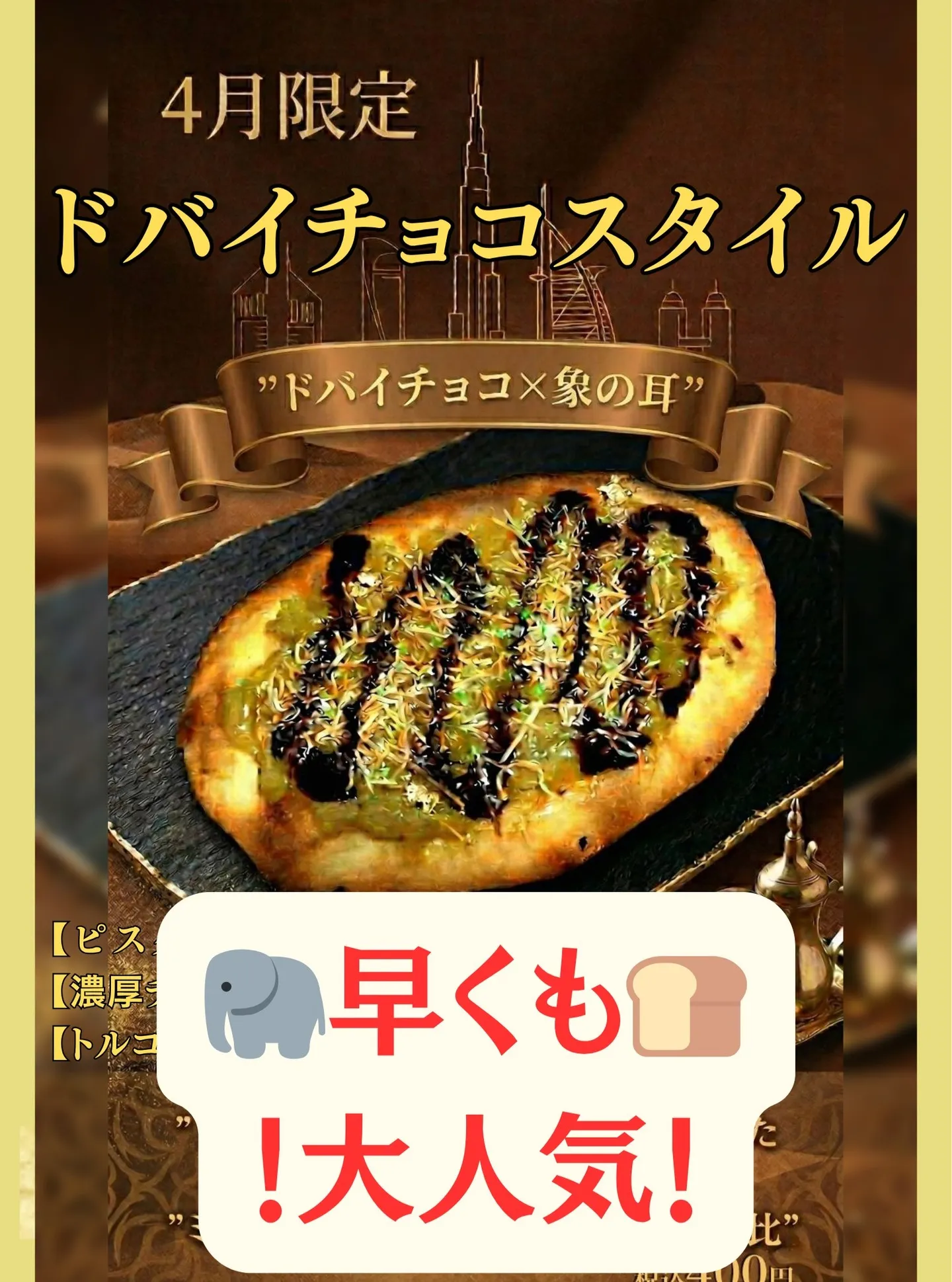 今話題のドバイチョコを象の耳トッピングにアレンジしました!